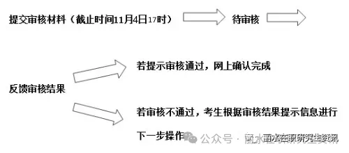 在10月31日至11月4日17時期間,各位考生完成審核材料上傳后1至3天返回審核結(jié)果考生及時登錄網(wǎng)上確認(rèn)系統(tǒng)查看審核結(jié)果。