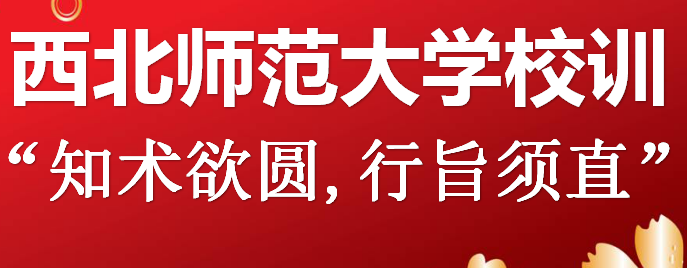 西北師范大學校訓:“知術(shù)欲圓,行旨須直”,從為學、做人兩方面提出了師生共同遵循的基本準則,體現(xiàn)著西北師范大學的歷史積淀和文化追求,是學校“崇尚學術(shù),追求卓越”的校風和“愛國進步,誠信質(zhì)樸,艱苦奮斗,自強不息”精神的獨特展現(xiàn)。